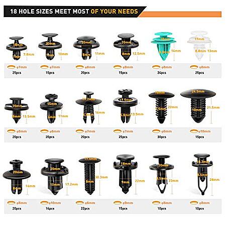 Amazon[amazon.com] has 360-Ct GOOACC Universal Auto Bumper Fastener Rivet Clips w/ Fastener Remover for $11.66. Shipping is free with Prime or on $35+ orders.