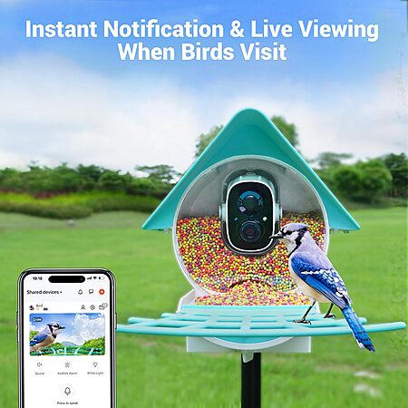 Birdkiss Smart Bird Feeder with FHD Camera & 3W Solar Panel (Light Blue) $49.99 + Free Shipping