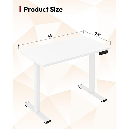 SanoDesk via Amazon [amazon.com] has 48"x 24" SANODESK Height Adjustable Electric Standing Desk w/ 6-Button Controller (White) for $89.98. Shipping is free.