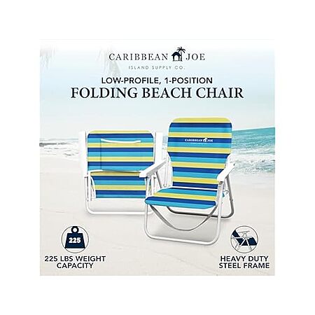 $24.99: CARIBBEAN JOE Folding Beach Chair – Lightweight, Portable, 1-Position, Bold Stripe, 225 lbs Capacity at Woot!