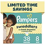 [S&S] $23.69: Pampers Swaddlers Diapers, Size 8 (30+ lbs), 38 Count, Absorbent, Skin Safe Disposable Baby Diaper