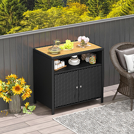 Costway Outdoor Rattan Storage Cabinet w/ Acacia Wood Countertop $90 + Free Shipping