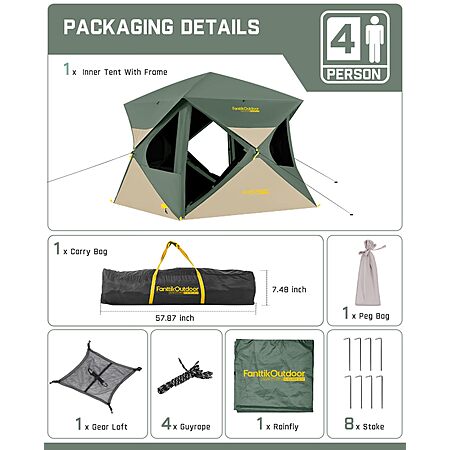 20% Off - FanttikOutdoor Alpha C4 Ultra Camping Tent 4 Person Pop Up Instant Cabin Setup in 60 Seconds. Portable Hub Tent with Rainfly & Windproof for Outdoor Camping & Overlanding