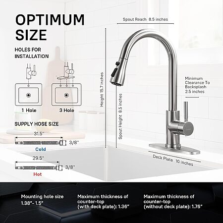 Model: WEWE Single Handle High Arc Brushed Nickel Pull out Kitchen Faucet,Single Level Stainless Steel Kitchen Sink Faucets with Pull down Sprayer