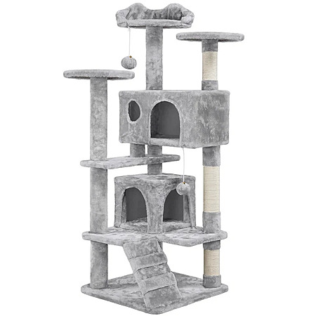 Alden Design 54" Multilevel Cat Tree with 2 Dangling Balls & 3 Scratching Posts, Light Gray And Dark Grey $39.99