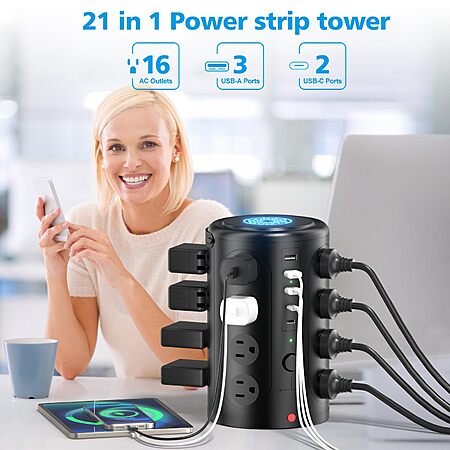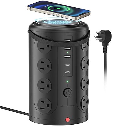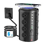 $28.64: Surge Protector Power Strip - Desk Charging Station with 15W Wireless Charger, Black, 6FT