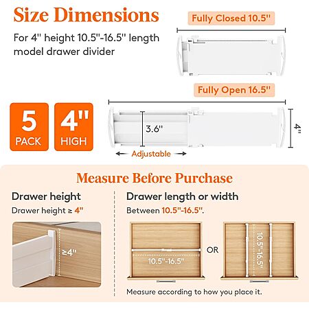 - Adjustable from 10.5 - 16 inches to fit most drawers
