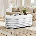 Walmart [walmart.com] has the Studio Living Livingston Modern Storage Ottoman (White Boucle) on sale for $138. Shipping is free.