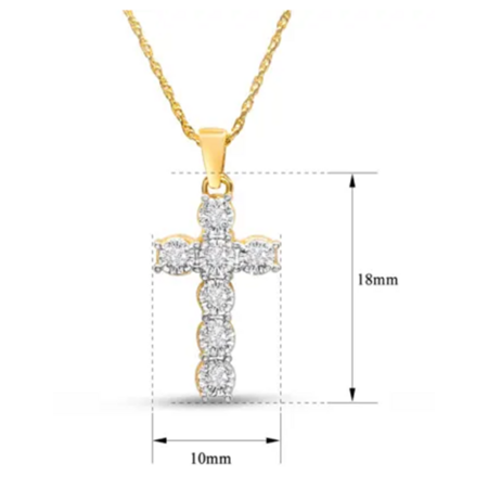 1/10 Carat Diamond Cross Necklace In Yellow Gold Over Sterling Silver (17 Inches) $37.97 + Free Shipping