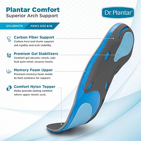 Amazon [amazon.com] has Dr. Plantar Insoles for Men (3/4 Length, Sizes 8-12) for $9.15. Shipping is free w/ Prime or on $35+.