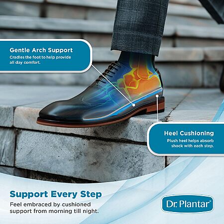 • Cushioned Gel Stabilizers: Premium gel absorbs impact with each step while keeping the insoles securely in place. This slip-free design promotes stability and can assist in reducing pressure on your feet throughout the day.