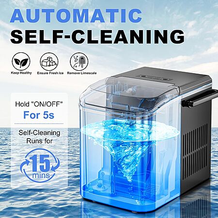 【Smart Operation & Self-Cleaning】The ice maker has an advanced infrared sensor. The "ICE FULL" indicator flashes to remind you to take out ice to prevent overflowing when the basket is full. And it'll remind you to add water by flashing "ADD WATER". Additionally, the table top ice maker machine has a one-touch auto-cleaning function. Press the "ON/OFF" for 5s after adding water to run automatic mode for 15mins. Not only are your hands-free but also you get a clean ice maker.