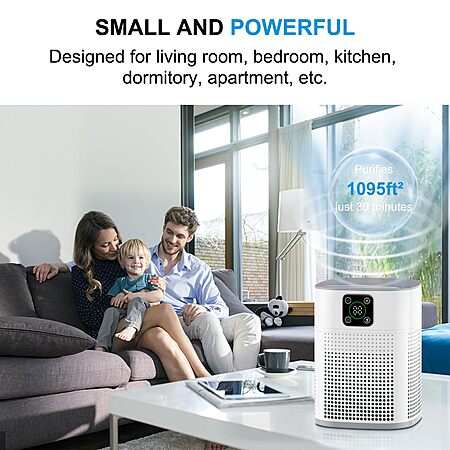 Air Purifiers for Bedroom, Honeyuan H13 HEPA Air Purifier for Home Large Room 1095 sqft, Air purifiers with 360°Air Intake, 3 Fan Speeds, 3-Stage Filtration, White $23.99
