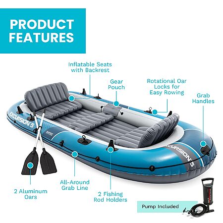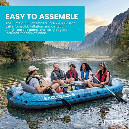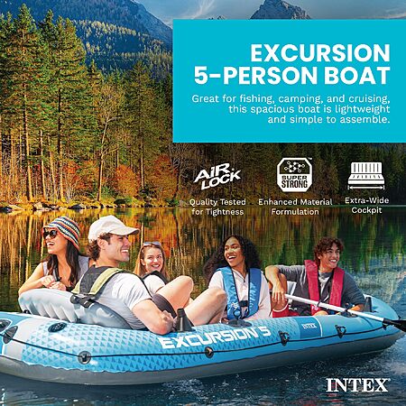 $181.99: INTEX Excursion 5 Inflatable Boat – 5-Person, 1320lb, Aluminum Oars & High-Output Pump at Amazon