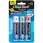 Amazon [amazon.com] has 3-Pack 0.15-Ounce ChapStick Moisturizer 2-in-1 Lip Balm SPF 15 (Original, Black Cherry & Cool Mint) on sale for $4.99 - 40% off when you 'clip' the coupon on product page [amazon.com] - 5% off when you checkout via Subscribe & Save = $2.74. Shipping is free w/ Prime or on orders $35+.
