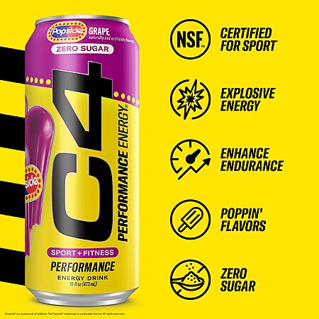 12-Pack 16-Fl Oz C4 Performance Energy Drink (Grape Popsicle) on sale for $19.98 -
