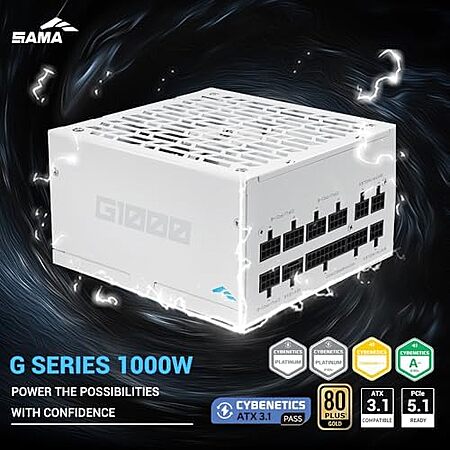 Model: SAMA G1000W ATX 3.1 Power Supply, 80 PLUS Gold & Cybenetics Platinum Certified, PCIE 5.1 Ready, Full Modular, 1000W Power Supply, Japanese...
