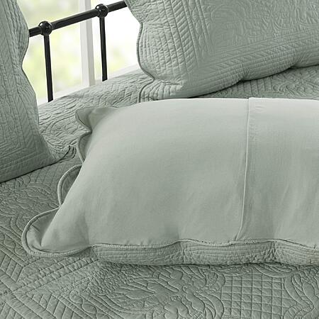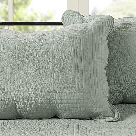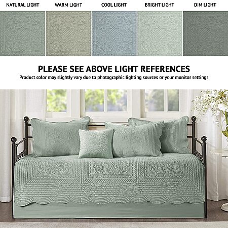 - Cottage Daybed Cover Set: Elevate your décor with charming farmhouse elegance daybed covers, featuring embossed damask quilting & a scalloped edge. Complete with matching shams, bedskirt and décor pillows; it's perfect for a coastal modern update