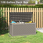 Dearca via Walmart.com has Bifanuo 100 Gallon Resin Deck Box, Lockable Outdoor Storage Container, Water Resistant for Patio Cushions on sale for $59.99.