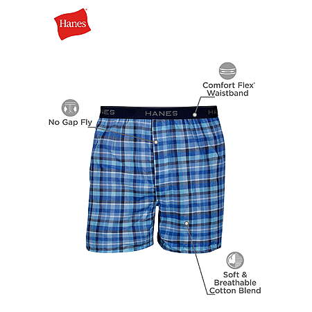 | Product Description: | Experience everyday comfort with Hanes® “best fit” men’s boxers, designed to keep you feeling confident and at ease. Made from a soft cotton blend, these boxers for men offer a roomier cut that moves with you while staying comfortably in place. The improved Comfort Flex® waistband stretches to fit your body and retains its shape wash after wash, providing a secure, flexible fit all day long. Cool Comfort® moisture-wicking fabric pulls sweat away from the skin to help you stay dry, fresh, and comfortable through busy days or active routines. A no-gap fly lies flat for smooth coverage, and the tag-free interior eliminates distractions for a clean feel. Available in classic plaid prints, this men's underwear 2-pack makes it easy to stock up on versatile, reliable boxers you’ll reach for again and again. Perfect for work, play, or downtime, these boxers for men combine soft fabric, smart design, and lasting comfort in one essential set. VALUE PACK - Each men's underwear value pack includes two pairs of plaid men’s boxers, giving you versatile options for your daily rotation. Perfect for work, weekends, or casual wear, they make stocking up on essentials easy and convenient ULTRA-SOFT FABRIC - Crafted from a cotton-blend with yarn-dyed construction, these men’s boxers feel soft against the skin. Lightweight and breathable, this underwear for men is designed to keep you comfortable throughout the day. IMPROVED WAISTBAND - Men's boxers featuring an improved Comfort Flex waistband now adjusts to fit you. STAY COOL & DRY - Crafted with Cool Comfort moisture-wicking fabric, these men's boxers pull sweat away from the skin to keep you feeling dry, comfortable, and refreshed all day. Perfect for active routines, long days, or warm conditions. FLEXIBLE WAISTBAND - The improved Comfort Flex waistband stretches and adjusts to your body for a secure, flexible fit. Soft against the skin, it retains shape wash after wash, giving your men's underwear reliable comfort all day. FLAT, SECURE FLY - Designed with a no-gap fly that lies flat against the body, this boxer underwear for men provides a smooth, streamlined look under clothing. The practical design offers dependable coverage, making everyday wear simple, comfortable, and hassle-free. TAGLESS COMFORT - Men's underwear finished with a tag-free interior to prevent discomfort. No scratchy tags means you get a smooth, clean feel against the skin and a comfortable fit from morning to night. |