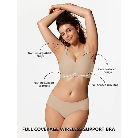 COCOMARTS Jelly Bras for Women No Underwire Scalloped Push Up Wireless Bralettes Seamless Soft Comfort Everyday Tshirt Bra Nude Large $15.71