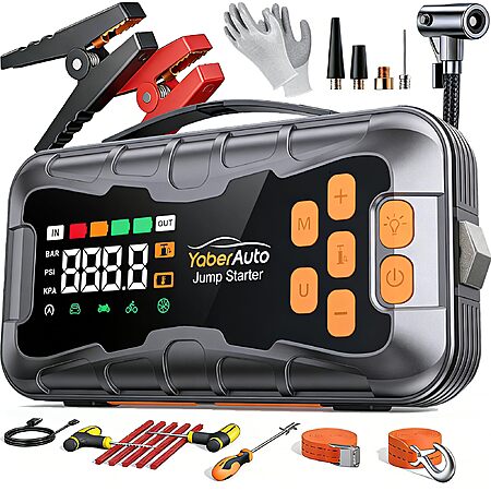 [AC] $59.99: YaberAuto 16-in-1 Jump Starter with Air Compressor 8000A 160PSI, 12V Jump Box, All Gas/14L Diesel