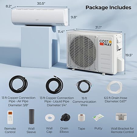Amazon has the COSTWAY 11500 BTU Mini Split Air Conditioner on sale as a Limited Time Deal. This versatile system provides both cooling and heating for spaces up to 750 sq. ft. It features an energy-efficient 17 SEER2 rating and Inverter technology. It is also WiFi-enabled and compatible with Alexa for smart home integration. The unit comes with a full installation kit.