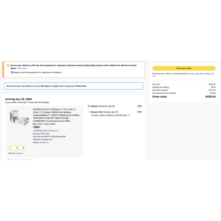 KAMRUI P2 Mini PC Windows 11 Pro 12600H i5 Processor | $385 for two mini PC