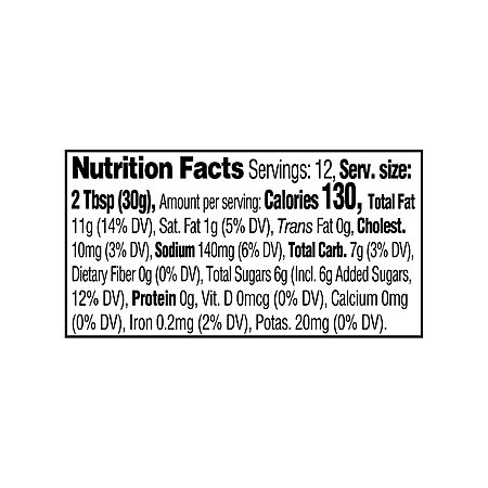Vegetable Oil (Canola And/Or Soybean Oil), Sugar, White Distilled Vinegar, Water, Tomato Paste, Apple Cider Vinegar, Egg Yolk, Whole Egg, Mustard Seed, Salt, Citric Acid (Antioxidant), Natural Smoke Flavor, Natural Honey Flavor, Dehydrated Onion, Xanthan Gum, Dehydrated Garlic, Cayenne Pepper Powder, Sodium Benzoate And Potassium Sorbate (Preservatives), Turmeric, Lemon Juice Concentrate, Paprika, Calcium Disodium Edta (To Retain Freshness), Spices.
