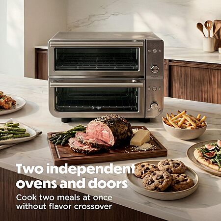 12-in-1 Ninja Double Oven Pro Smart XL Countertop Oven & Air Fryer | Versatility with Smart Finish & DualZone Tech to Cook (Silver) for
