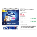 Charmin Toilet Paper Ultra Soft, Mega Rolls, 9.0 ea $6.99 AC or less