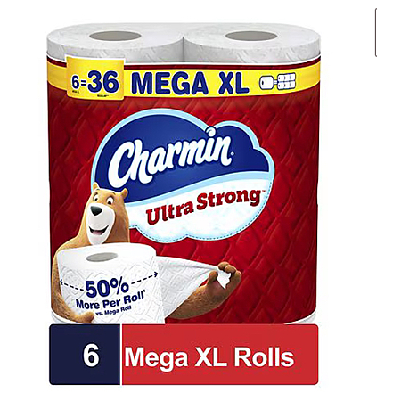 Charmin Ultra Strong, 6 Mega XL or 9 Mega (=36 reg rolls), $6.29