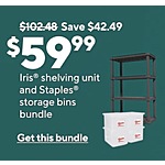 55.8" Iris 4-Shelf Plastic Shelving Unit + 4 Staples Plastic File Box w/ Lids $59.99 + Free Shipping