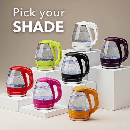 - ENJOY HOT WATER ANYTIME – This attractive glass electric kettle provides fresh, tasty water for making tea, oatmeal, hot chocolate, instant soup and coffee. Perfect for your home or kitchen, it operates on 1100W (120V) and boils a full 1.5L pot of water in just 7 minutes or less! It's 50% more efficient than traditional stovetop kettles, helping you save on electricity while quickly enjoying your favorite hot drinks.