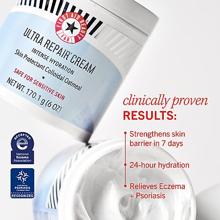 Model: First Aid Beauty - Ultra Repair Cream, Intense Hydration Whipped Colloidal Oatmeal, Clinically Proven to Strengthen Skin Barrier in 7 Days & Helps Relieve Eczema, Luxury Face & Body Moisturizer, 2 oz