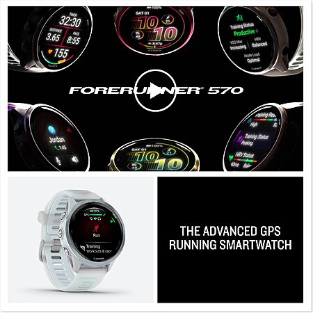 Amazon.com has Garmin® Forerunner® 570, 42mm, Advanced GPS Running and Triathlon Smartwatch, AMOLED Display, Training and Recovery Features, Cloud Blue Aluminum with Translucent Whitestone/Band on sale for $449.99.