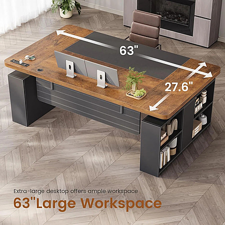 63" Ebern Designs Executive Standing Desk w/ Storage & Power Outlets (Brown/Black or Natural Oak/White) $285.99 + Free Shipping