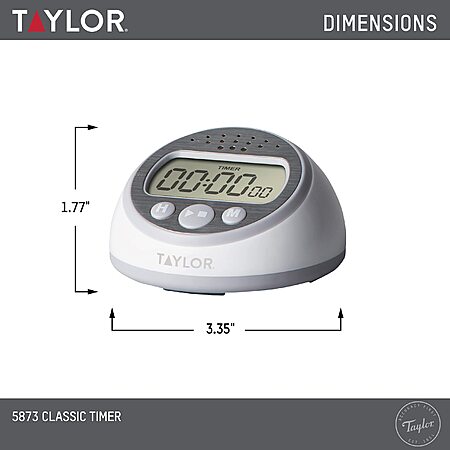 - SUPER LOUD TIMER: This Taylor Precision Products timer is loud and will continue until user turns it off. No more overbaked cookies!