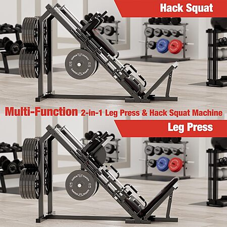 - 2-IN-1 Leg Press Hack Squat Machine: WAXMAN 5-Degree Leg press hack squat combo. Targets quads, hamstrings, glutes and calves. No lower back pain. Great for leg day success. Ideal for those bringing commercial gym efficiency home. Plate-loaded for intense lower body workouts