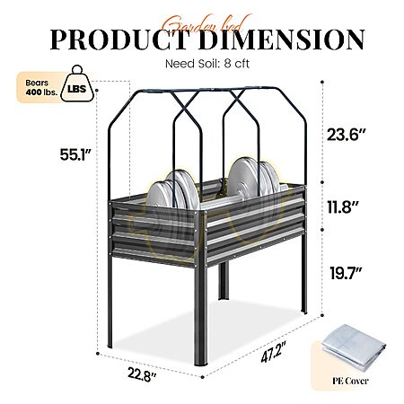56" x 49" King Bird Galvanized Raised Garden Bed w/ Cover & Legs (Dark Grey) $84.98 + Free Shipping