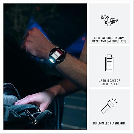 Model: Garmin® Forerunner® 970, Premium GPS Running and Triathlon Smartwatch, AMOLED Display, Built-in LED Flashlight, Carbon Gray DLC Titanium with Black Case and Black/Translucent Whitestone Band