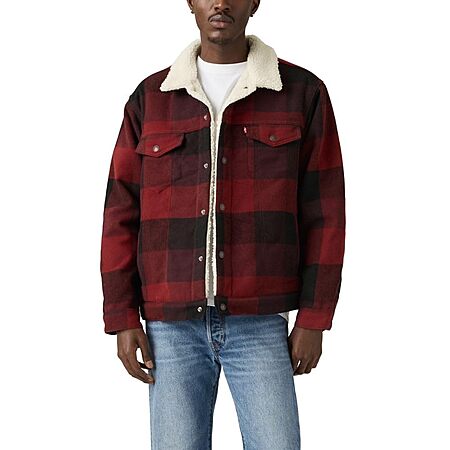 $43.70: Levi's Relaxed Fit Trucker, Laredo Plaid Decadent Chocolate (Non Stretch), Small