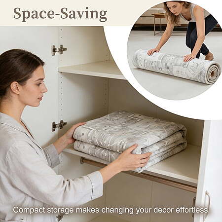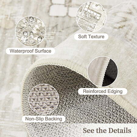 | Product Description: | These imitation linen/polyester area rugs combine the soft, textured look of linen with the durability and easy care of polyester. Low-pile and machine washable, they’re perfect for high-traffic areas like living rooms, bedrooms, and dining rooms. Featuring a non-slip backing for safety and stability, they come in multiple sizes and stylish patterns to suit any decor—offering comfort, practicality, and effortless maintenance. 【Plush and Comfortable Surface】 This rug combines plush softness underfoot with exceptional durability, perfect for daily relaxation and comfort. The medieval-inspired pattern in rich, earthy tones adds character to any room while withstanding active household use. Its sturdy construction maintains beauty and function over time. 【Durable Locked-Edge Construction】 Featuring reinforced edges with tight double stitching, this polyester rug resists fraying and maintains its shape even in high-traffic areas. The precision craftsmanship ensures the intricate medieval pattern remains intact through years of regular use in living rooms and hallways. 【Secure Non-Slip Design】 Engineered with a full-coverage rubber backing, this rug stays securely in place on hardwood, tile, and laminate flooring. The reliable grip enhances safety in active households and helps prevent accidental slips during daily activities. 【Easy Fold and Compact Storage】 Say goodbye to struggling with heavy, rigid carpet rolls! When not in use, this lightweight washable rug folds neatly for space-saving storage. Its convenient design makes it simple to rotate with other rugs or store flat and bulky rolls. 【Simple Cleaning Maintenance】 Designed for hassle-free upkeep, this rug accommodates various cleaning methods. Use your robot vacuum for daily maintenance, spot-clean with a damp cloth for spills, or machine wash when deep cleaning is needed. The practical cleaning options make it ideal for busy modern households. |