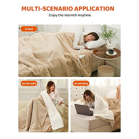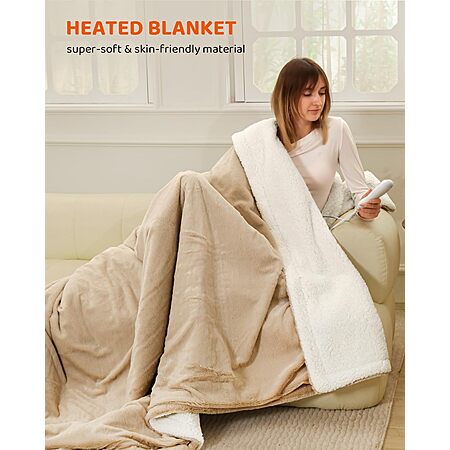 Electric Blanket Queen Size 84"x90", Heating Blanket (beige or brown) - Lightning Deal $21.25