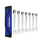 WORKPRO 7-Piece Ratcheting Combination Wrench Set, 72 Teeth, Cr-V Constructed, Combo Ratchet Wrenches Set with Roll Up Pouch, Metric 8mm-17mm $17