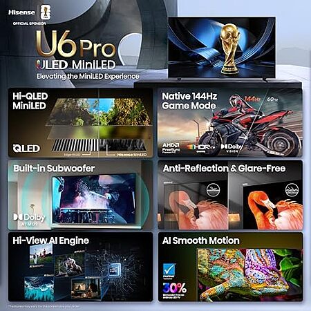 $649.99 | Hisense 55" U6 Pro Series Mini‑LED 4K UHD HDR Gaming AI Smart Fire TV (55U6SF Pro, 2026 New) at Amazon