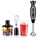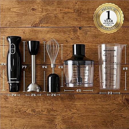 $18.50 | Ovente Immersion Electric Hand Blender w/ Stainless Steel Blades, Egg Whisk Attachment, Mixing Beaker & BPA-Free Food Chopper (Black HS565B) at Amazon