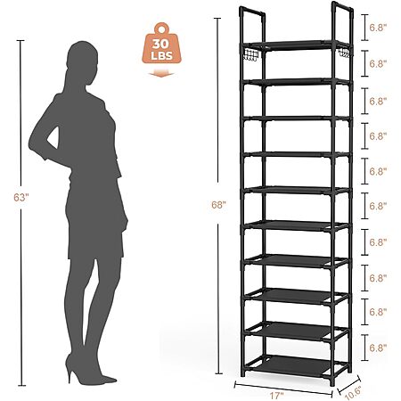 10-Tier 61.2" x 34" Lanteful Shoe Rack Organizer from $17.09 + Free Shipping w/ Prime or on $35+