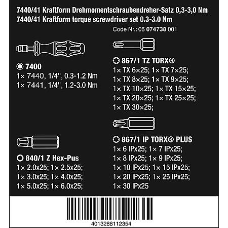 Wera 05074738001 7440/41 Kraftform torque screwdriver set 0.3-3.0 Nm, 26 pieces $189.80