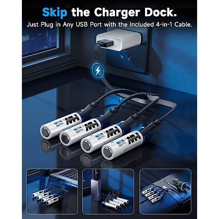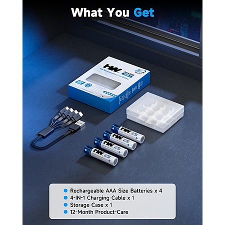 HW USB Rechargeable AAA Lithium Batteries 1.5V 4-Pack with A-C Cable - 1000+ Cycles | Fast Charging 4/27 approved **ehh** $8.83
